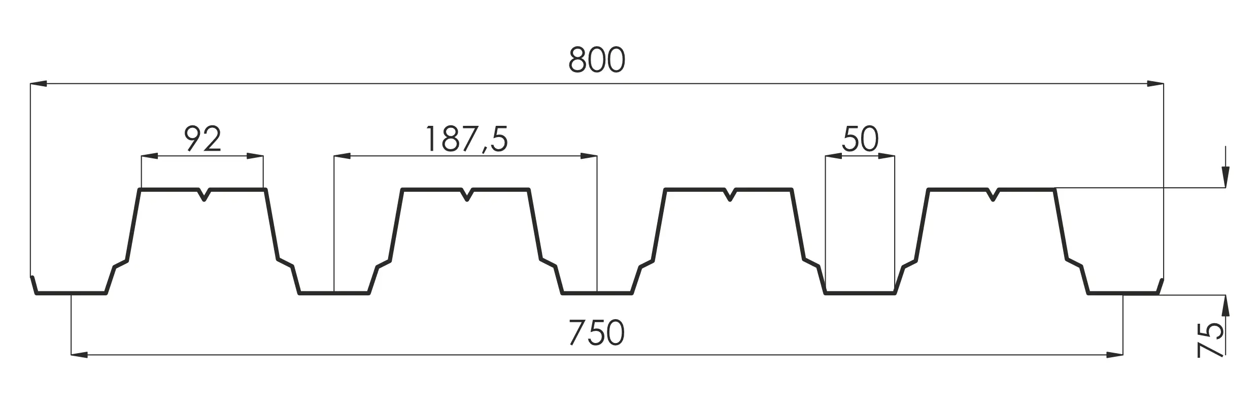 - рабочая ширина листа (вычитается нахлест соседних листов при монтаже) 750 мм